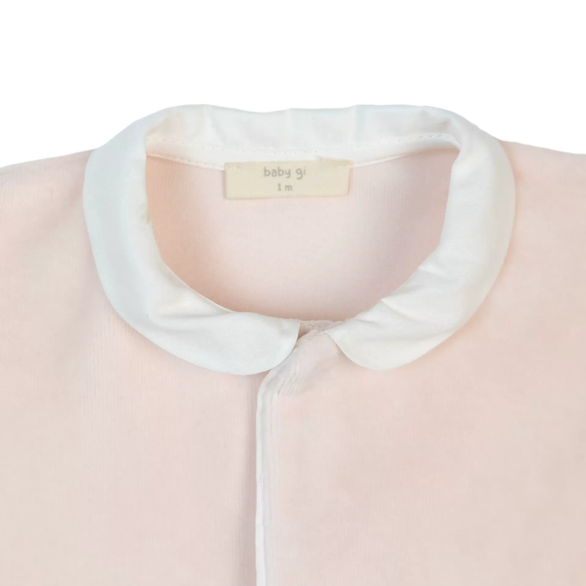 Babygrow Laminado (veludo)em rosa pêssego do tema Angel Collection da Baby Gi, um "best seller" que volta a ser uma aposta forte da marca, e pronto a satisfazer as mamãs dos nossos anjinhos