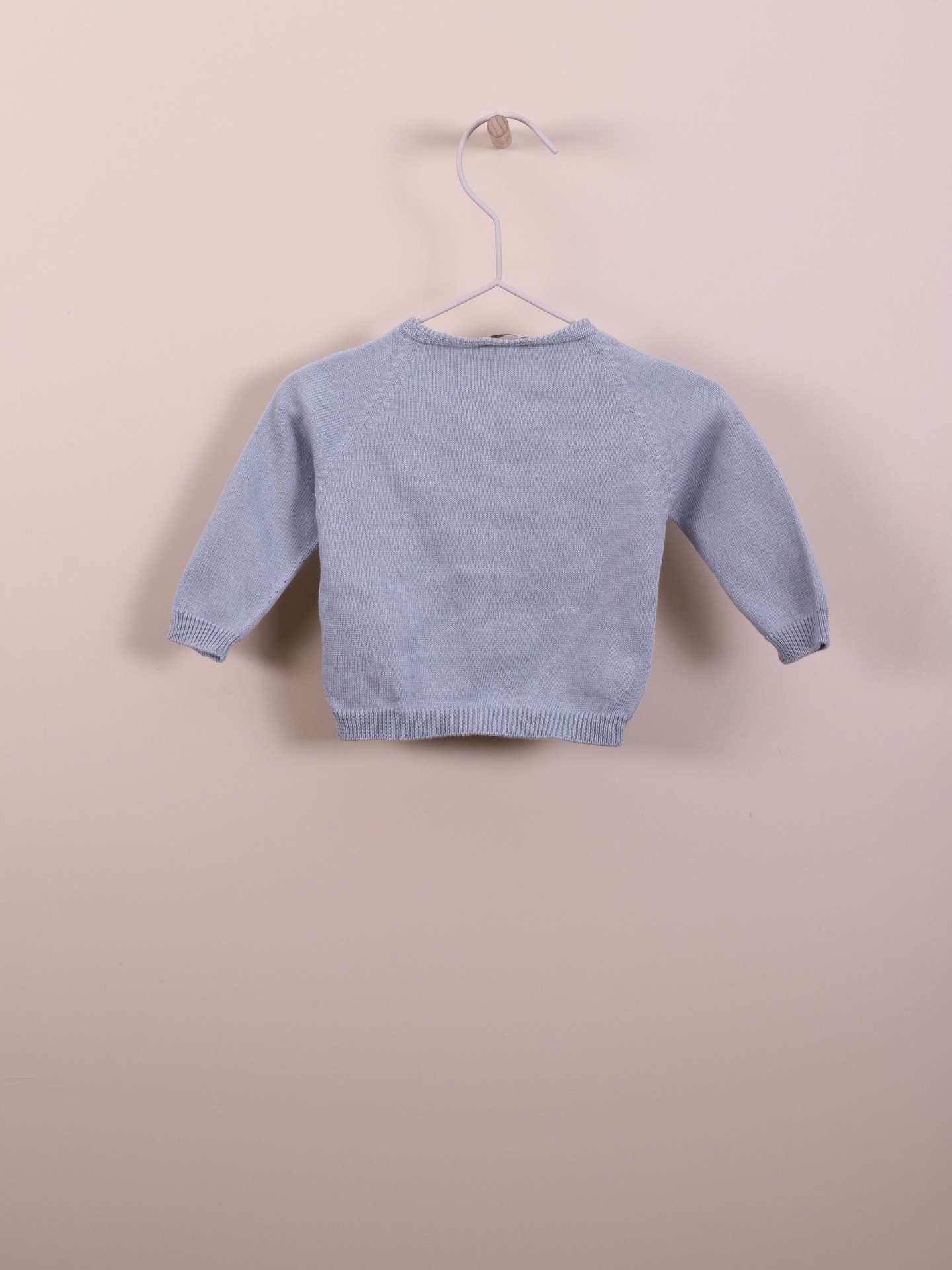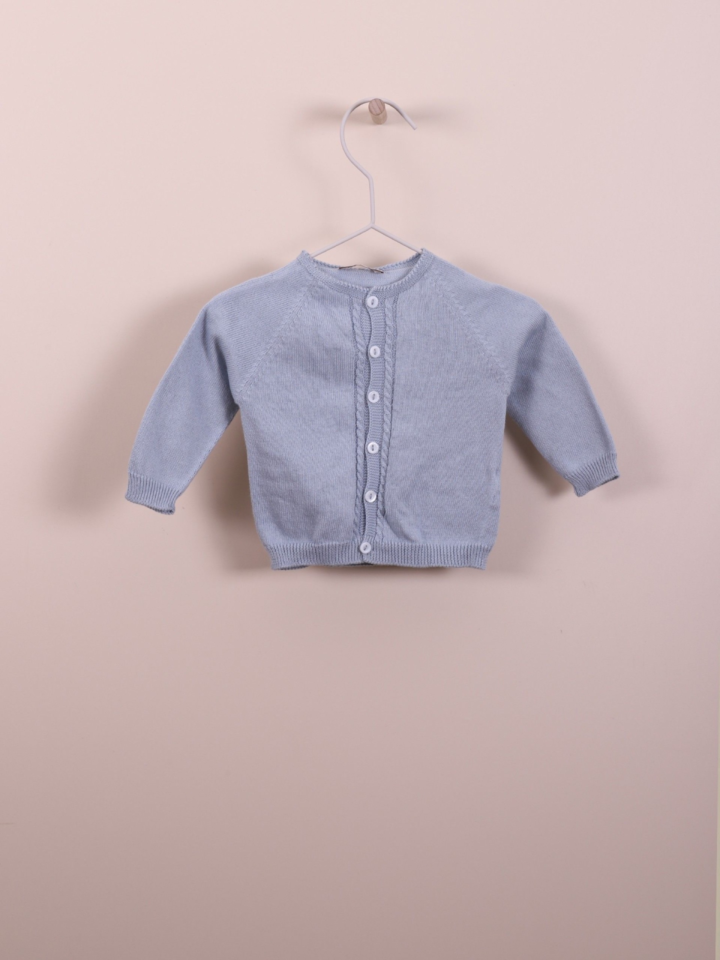 Home Camisolas e Casacos Casaco com decote redondo tricotado em algodão azul bebé -50% Casaco com decote redondo tricotado em algodão azul bebé SKU: Wedoble 10308D Cor 01 TAMANHO 1M - 55cm 3M - 62cm 6M - 68cm 9M - 71cm 12M - 76cm 18M - 80cm 15,50 € 31,00 € Desconto de 50%. IVA incluído. Comprar Contactar Adicionar à wishlist Promoções Primavera Verão. Válido de 4 de Fevereiro de 2026 às 00:00 até 1 de Outubro de 2026 às 00:00. Casaco com decote redondo tricotado em algodão da Wedoble Casaco de manga comprida tricotado em malha de algodão suave, ideal para bebés meninos e meninas, até aos 4 anos. O casaco com decote redondo aperta na frente com botões madre pérola. Produzido em Wholegarment, uma peça completa sem costuras, para maior conforto do seu bebé. Composição: Tecido 100% algodão Guia de tamanhos: Tamanho (meses) Medidas(cm) 1M 55cm 3M 62cm 9M 71cm 12M 76cm 18M 80cm Marca Wedoble Tags WedobleCasacoAlgodãoAzul bebé Características Partilhar