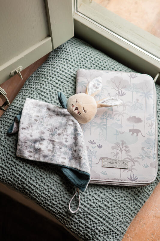 Doudou de coelho bege, com um padrão que complementa a linha Serengueti da Pasito a Pasito. São peluches de extrema qualidade.