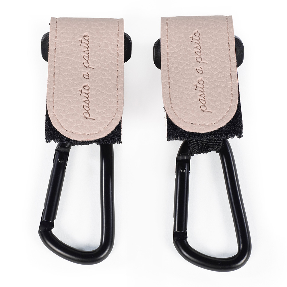 Set 2 Ganchos Pasito a Pasito Icon Rose – Conjunto de 2 ganchos para carrinho de bebé Icon em ecopele. Gancho metálico. Muito fácil de fixar graças às suas tiras de velcro.