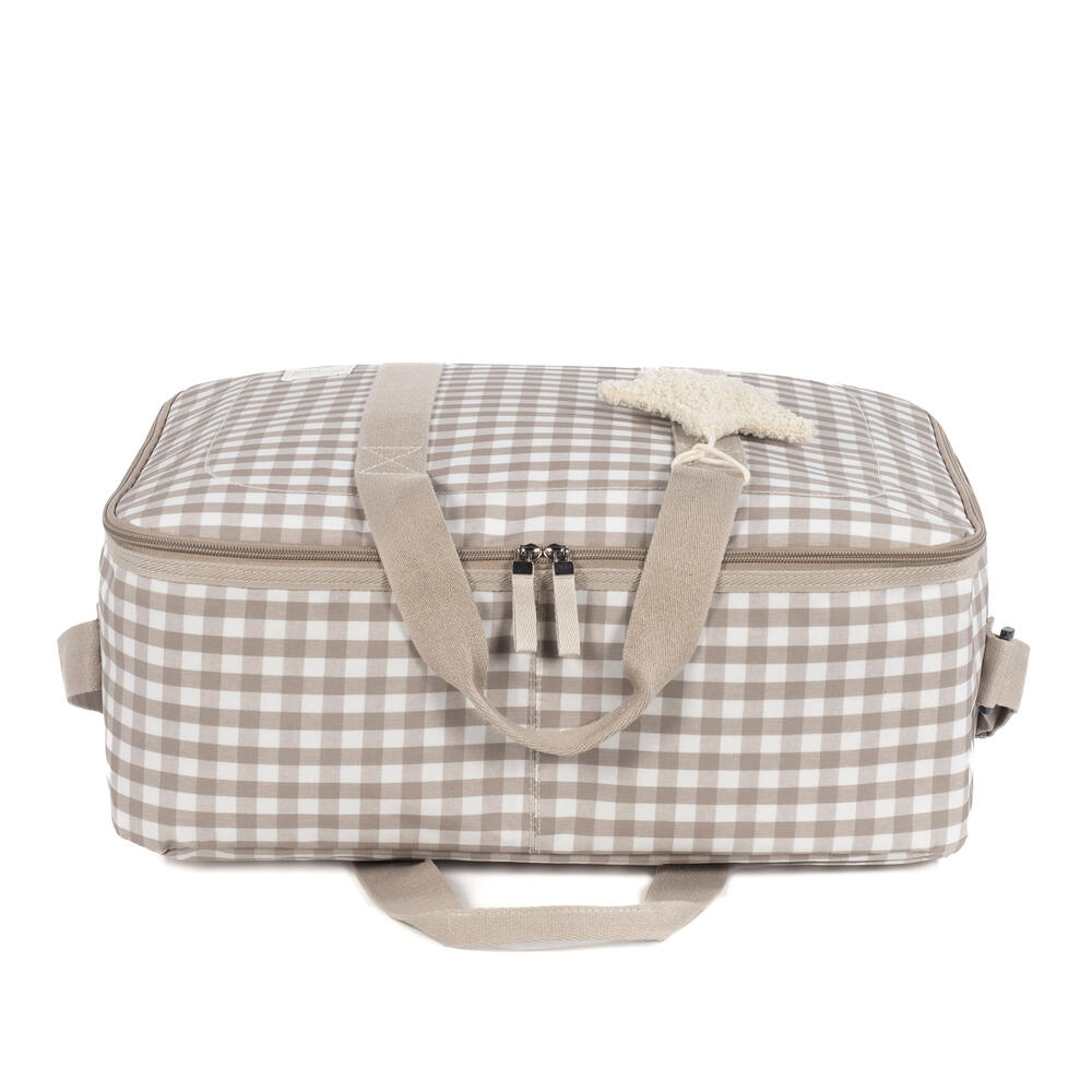 A mala de maternidade xadrez bege Caetana Sand é uma mala especialmente desenhada para o momento mais importante da gravidez, que é a chegada do seu bebé, altura em que há muitas coisas para preparar.