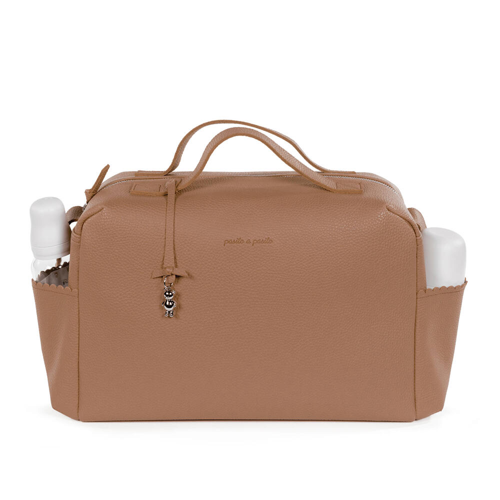 Mala de maternidade cor castanha da Pasito a Pasito feita de polipele resistente, com amplo espaço para organização para todos os essenciais do bebé.