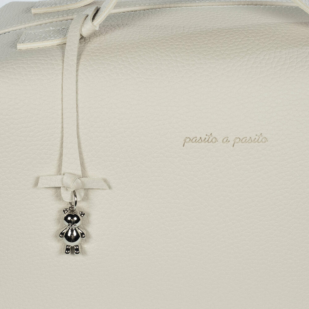 No seu interior, a Mala de Maternidade Icon Cream possui um forro acetinado com o logo da Pasito a Pasito e bolsos para organizar todos os artigos do(a) bebé. No exterior, conta com dois bolsos laterais ideias para garrafas e/ou biberões e logo Pasito a Pasito com urso pendente metálico.