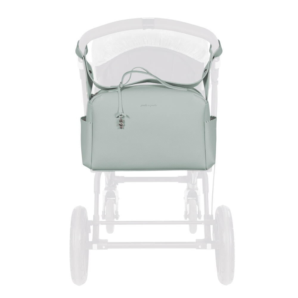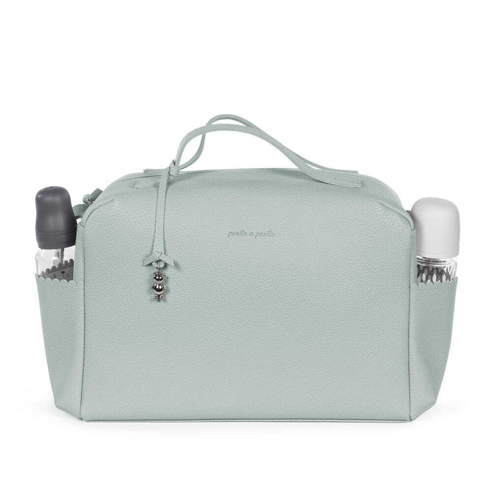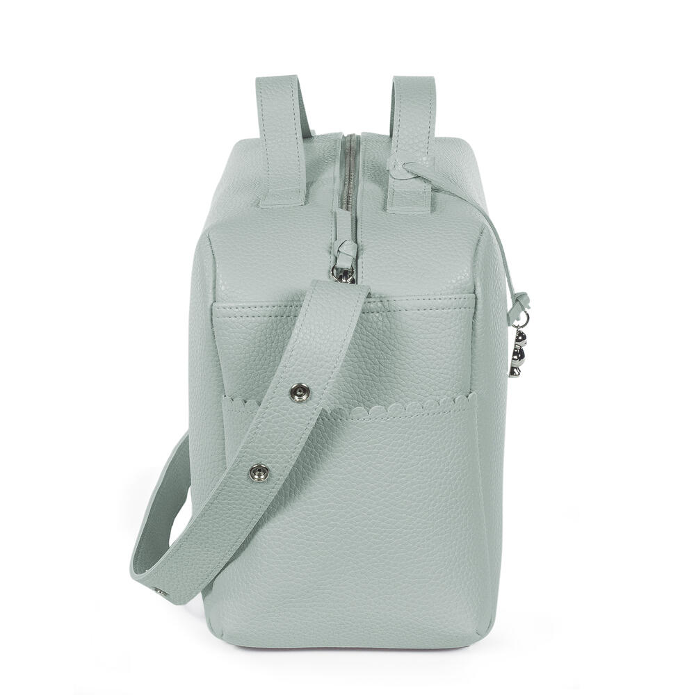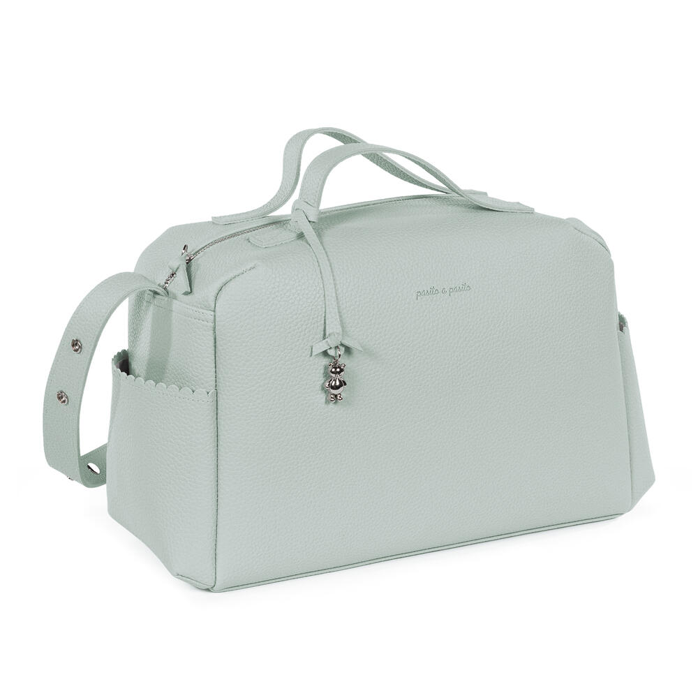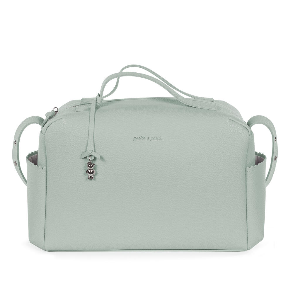 Mala de maternidade cor verde da Pasito a Pasito feita de polipele resistente, com amplo espaço para organização para todos os essenciais do bebé.