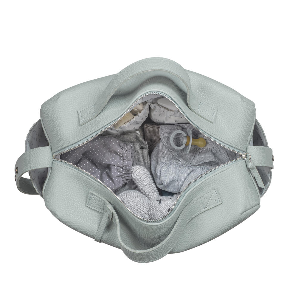 Feita em polipele verde resistente, esta mala oferece uma ampla capacidade para garantir que consegue transportar todos os essenciais do(a) bebé.