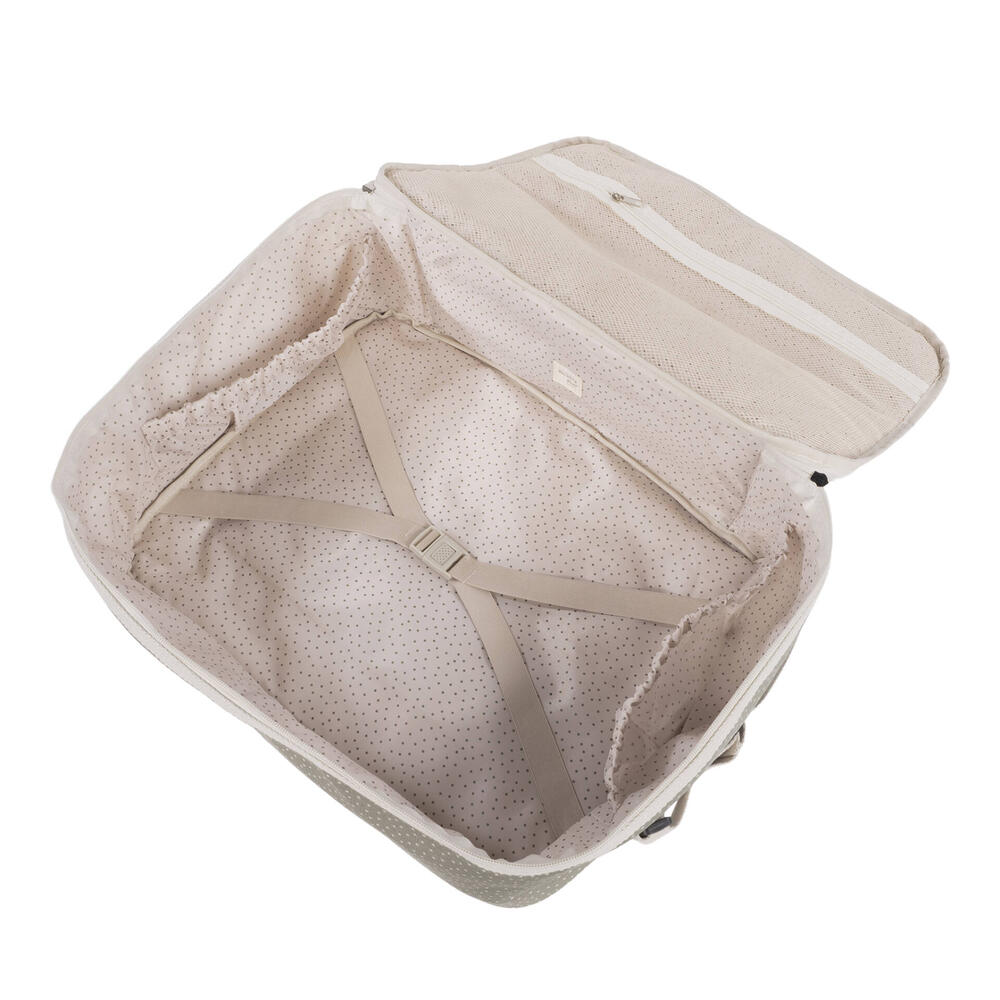 Com alças de mão, alça de tiracolo, bolsos no interior e sistema de elásticos para manter as roupas organizadas, esta mala é perfeita para corresponder às necessidades da mãe e do bebé.