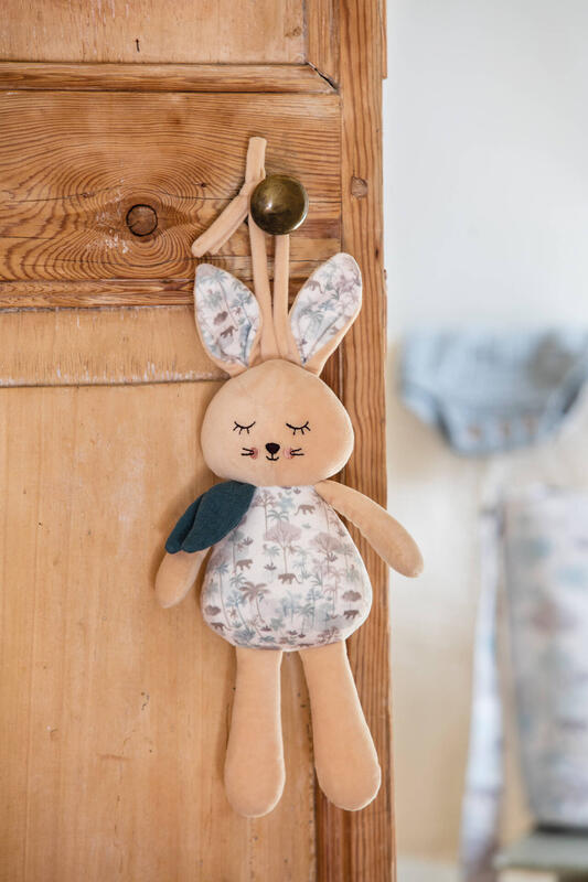 Coelho musical rosa com motivos da coleção Serengueti da Pasito a Pasito, além de estéticamente ser muito mimoso, é um artigo muito especial para colocar seu bebé a dormir. Contém uma faixa de suspensão prática.