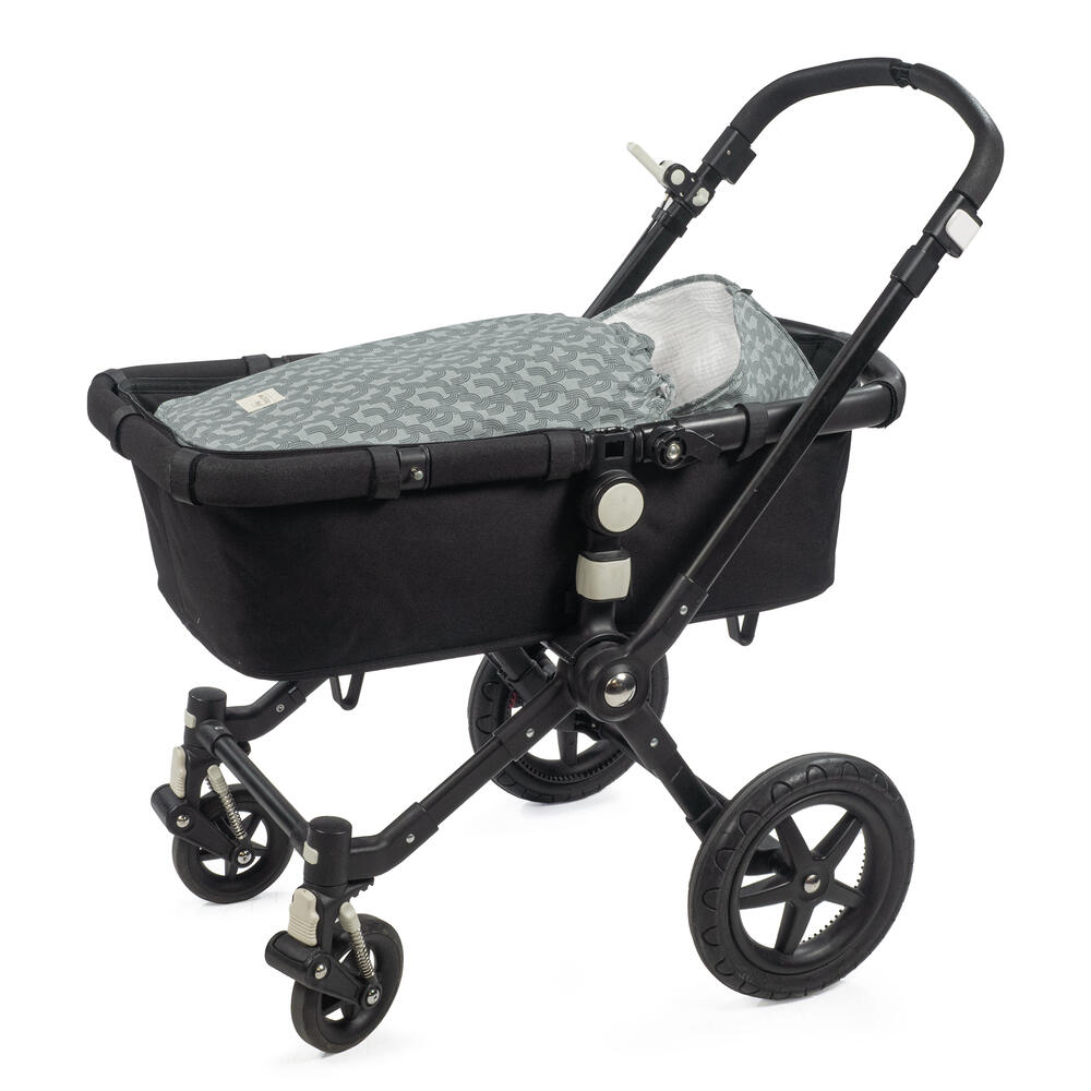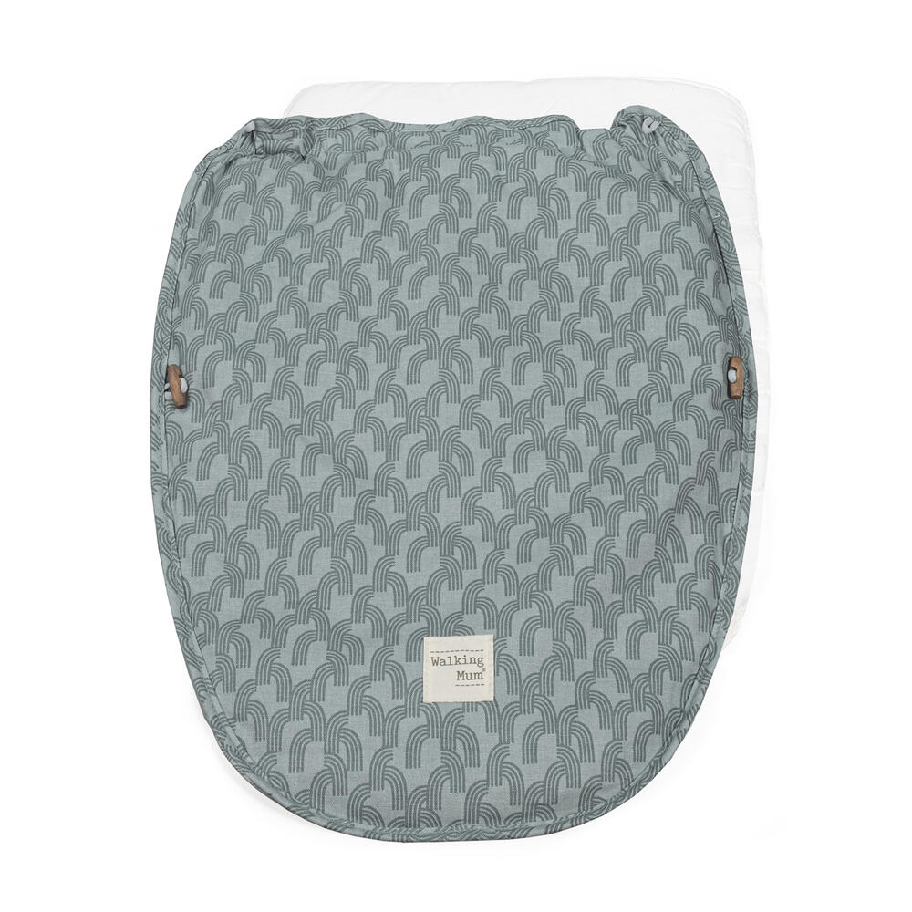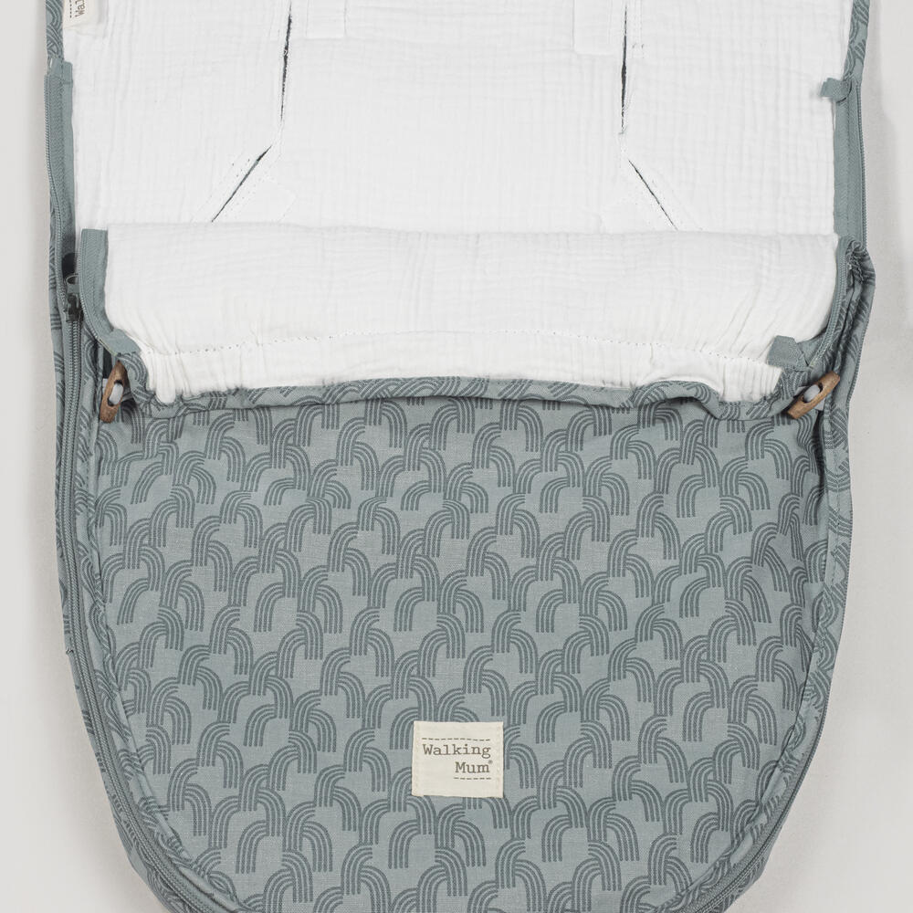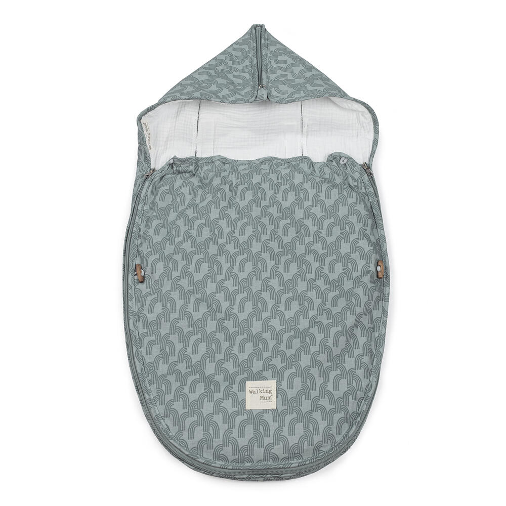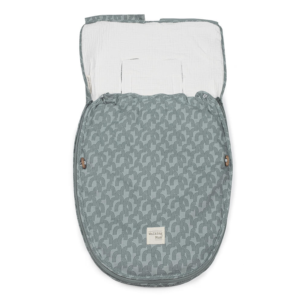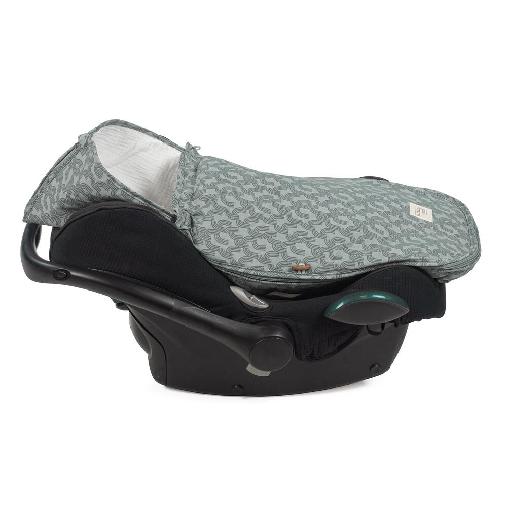 Saco Térmico 2 em 1 Tulum com estampa geométrica verde grupo 0. Capa de assento de carro perfeita com saco de dormir para manter seu bebé confortável durante a meia estação.