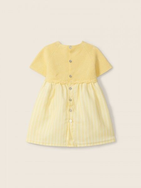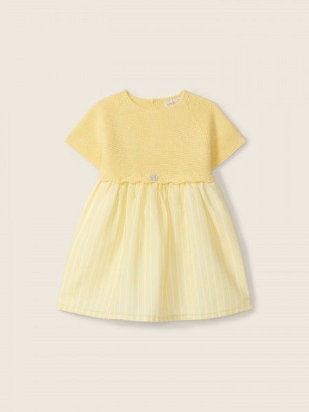 Home Nova Coleção Primavera - Verão Vestido de manga curta com riscas amarelo | LET LOVE GROW Wedoble Vestido de manga curta com riscas amarelo | LET LOVE GROW Wedoble SKU: Wedoble V26.05404A Cor 90 TAMANHO 12M - 76cm 18M - 80cm 24M - 88cm 47,25 € Desconto de %. IVA incluído. Comprar Contactar Adicionar à wishlist Vestido de manga curta com riscas amarelo | LET LOVE GROW Wedoble Vestido de manga curta ideal para bebés meninas, até aos 4 anos. A parte do peito do vestido LET LOVE GROW é suavemente tricotada em malha fina de algodão orgânico com um elemento da marca decorativo na frente. A saia é produzida em tecido de algodão suave com riscas amarelas e brancas, forrada em algodão leve para maior conforto. Aperta nas costas com botões madrepérola. Produzido em Wholegarment, uma peça completa sem costuras, para maior conforto do seu bebé. Composição: Malha: 100% algodão orgânico. Tecido: 100% algodão. Forro: 100% algodão. Guia de tamanhos: Tamanho (em meses) Medidas (em cm) 1M 55cm 3M 62cm 6M 68cm 9M 71cm 12M 76cm Marca Wedoble Tags WedobleVestidoAlgodão OrgânicoAmareloLet Love Grow Características Partilhar